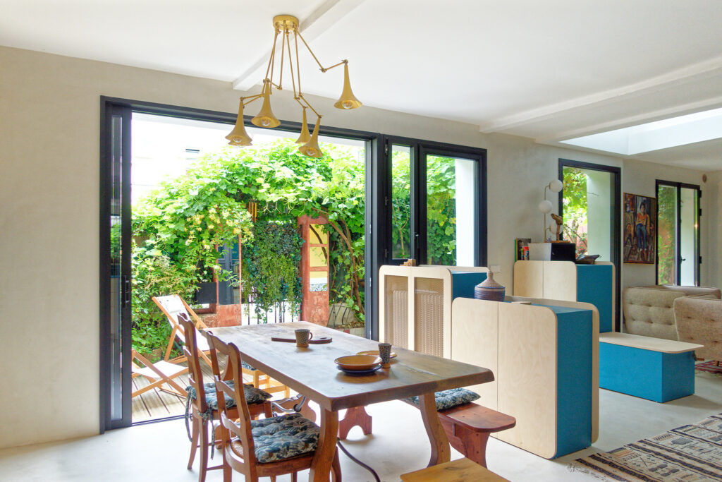 Cette maison située sur les hauteurs de Ménilmontant appartient à ses propriétaires depuis déjà bien longtemps. Deux étages et une petite terrasse, elle a tout pour plaire mais sa monoexposition rend difficile l’accès de la lumière au fond des pièces; et avec la déco qui avait un peu d’âge, on avait carte blanche!
