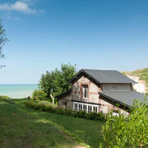 Les propriétaires de cette maison située à 80 mètres de la falaise sur les cotes Normandes souhaitaient entièrement la rénover. Ils voulaient en profiter pour agrandir la cuisine et profiter au maximum de la vue. Il fallait donc imaginer une